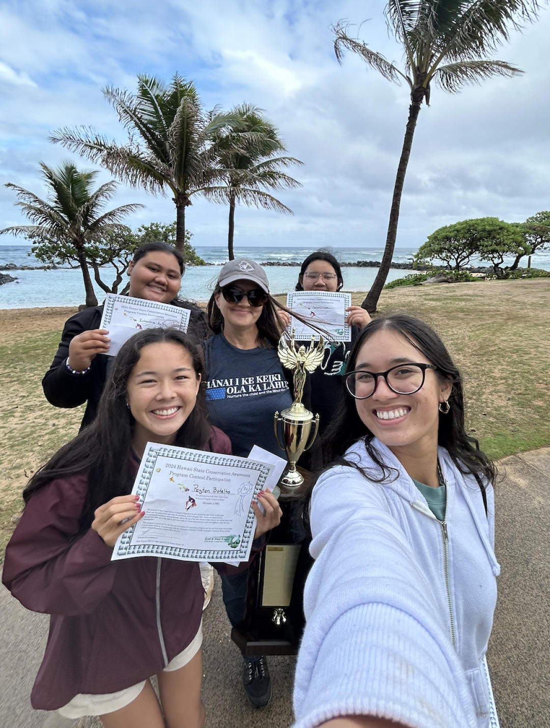 Hoʻomaikaʻi to Peyton, Edwinna, Jerzi, Satomi and Kumu Forster on winning the State Conservation Contest once again this year.