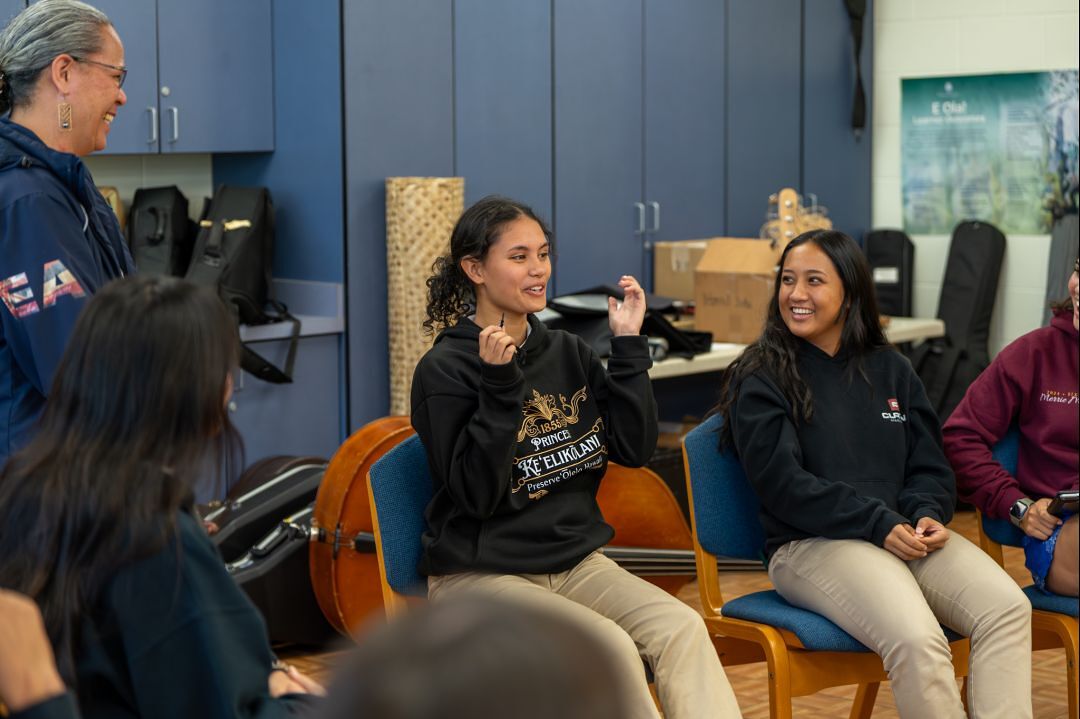 Keakealani Cashman chats with her fellow classmates in Honors Papa ‘Ōlelo Hawaiʻi.