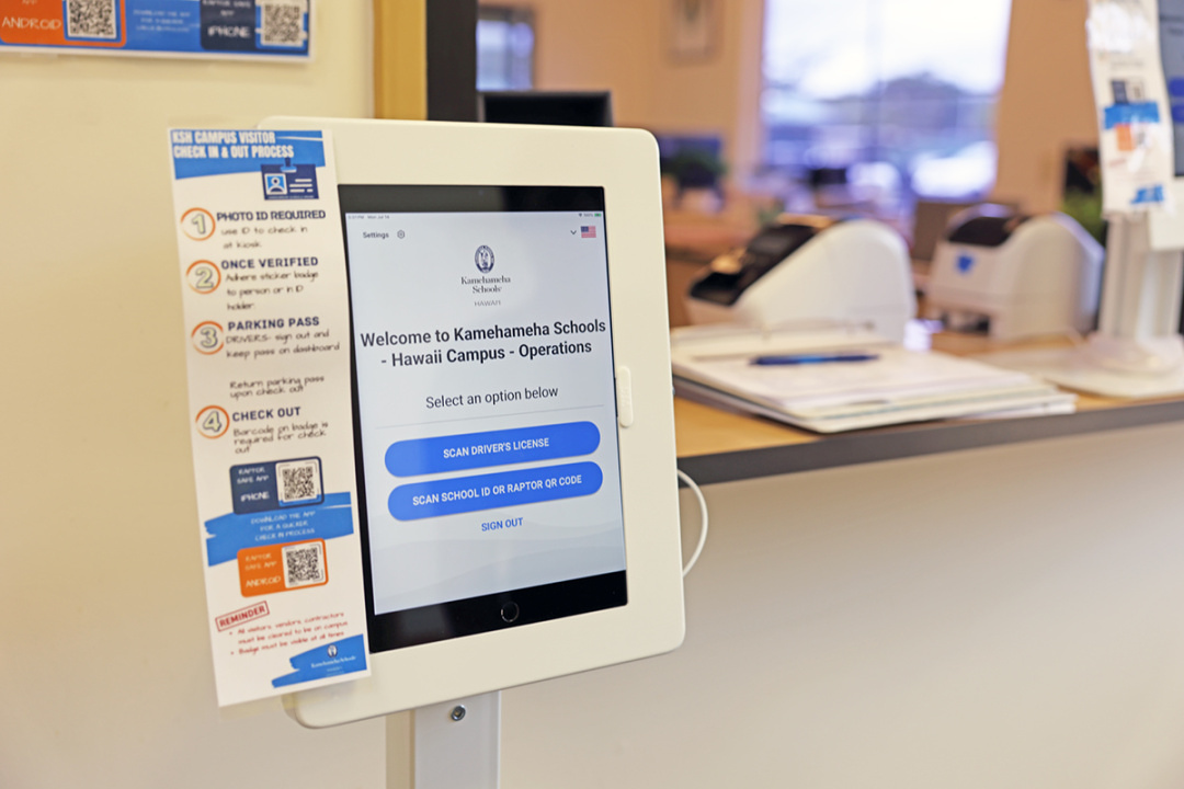 As of July 31, Ke Kula ʻo Kamehameha ma Hawaiʻi will be using a new visitor management system across our campus. Originally piloted by Kula Haʻahaʻa, our kula will be using the Raptor Visitor Management System called VisitorSafe. The procedure itself remains the same: All visitors, vendors, and volunteers are required to check-in to division offices with a government-issued photo ID and sign-in, wear a designated badge at all times as well, and sign-out when leaving.