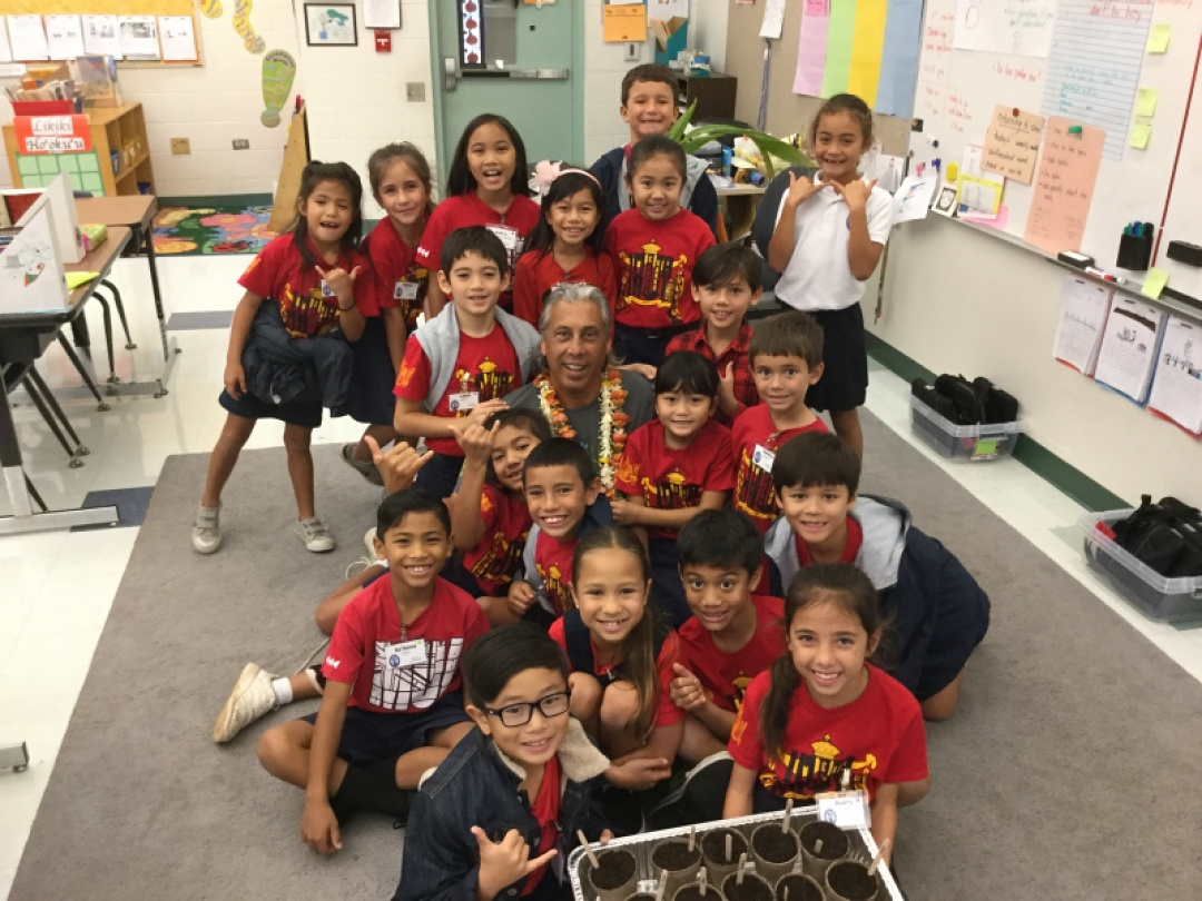 Have you ever asked yourself where we would be without seeds?  Second graders had an opportunity to consider that thought as they took part in Maui County Farm Bureauʻs “Agriculture In The Classroom Program.”  Led by Farmer Kaʻeo (Patrick Ornellas), students participated in hands-on activities to help them understand the importance of seeds.  They learned about the life cycle of a plant and the cultivation of crops.  Each student ended their session by planting papaya seeds. This experience compliments our visits to Kapikohanaiāmālama, as well as prepares students for the garden they will create in science.
