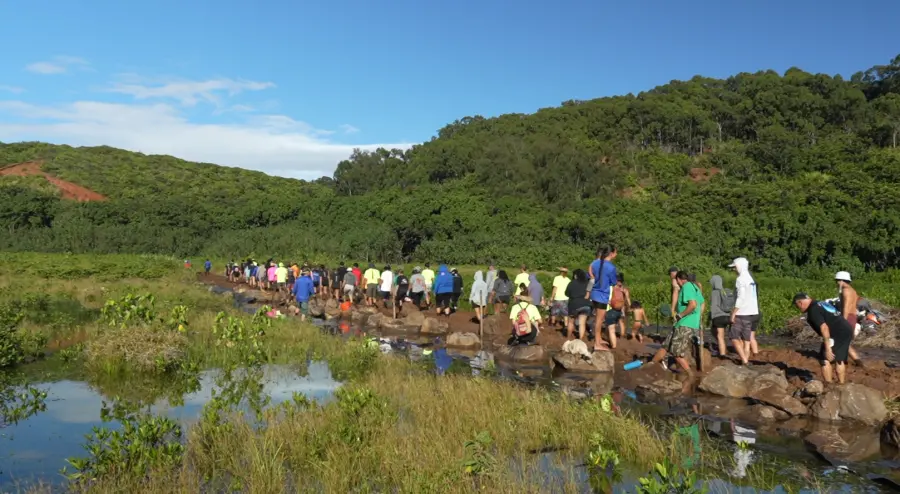Cobb-Adams marveled at the success of an event called E Kū Ana Ka Paia. In fall 2023, nearly 2,000 volunteers comprised of uhau humu pōhaku (Hawaiian stone masons), loko iʻa experts and others helped restore parts of the Alakoko rockwall in what’s believed to be the largest modern workday gathering ever on Kauaʻi.