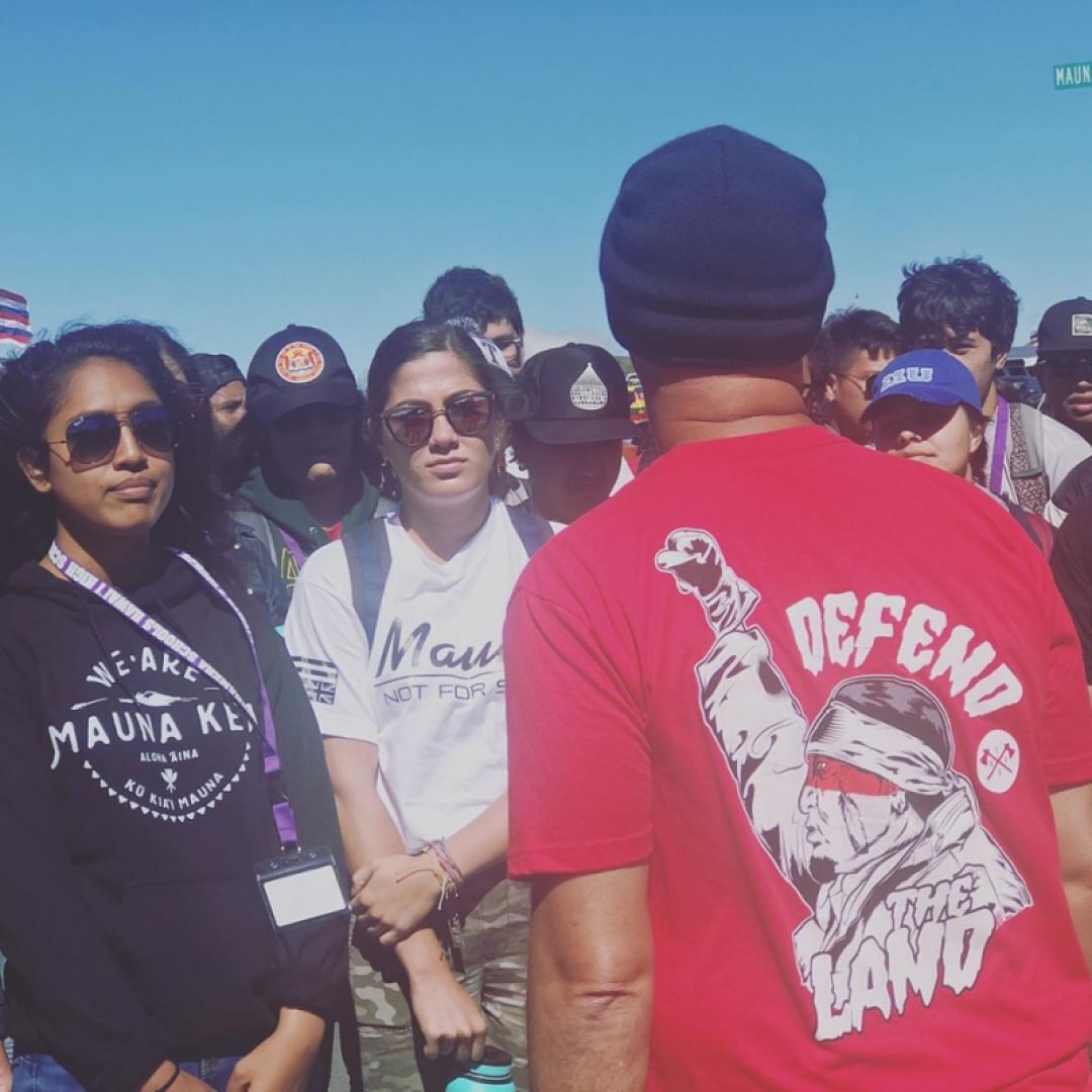 Senior students recently visited Puʻuhonua o Puʻuhuluhulu to understand and witness firsthand what was happening there. They learned new oli and mele, participated in protocols, volunteered at the Pu’uhonua, and got to meet with kūpuna. Photo: Kanaeokana