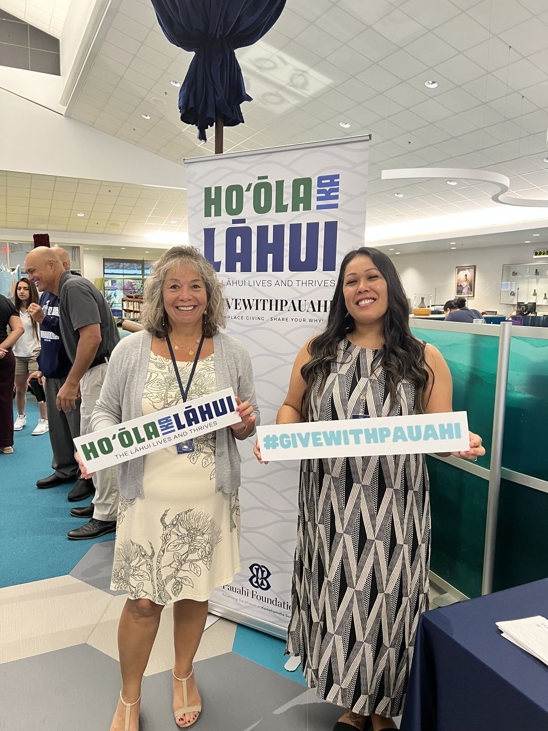 This year's Hoʻōla I Ka Lāhui Workplace Giving campaign leads for our kula are Jeri Spain and Kapae Comstock.