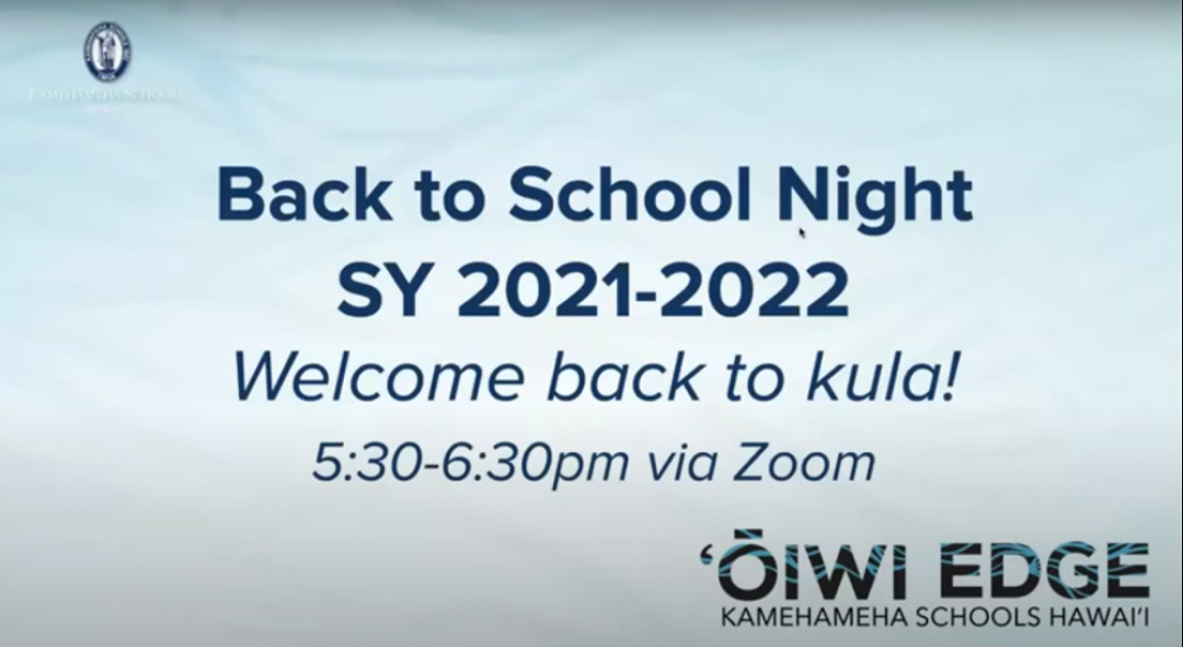 Our annual Kula Waena Back to School Night took place on August 6 via Zoom.