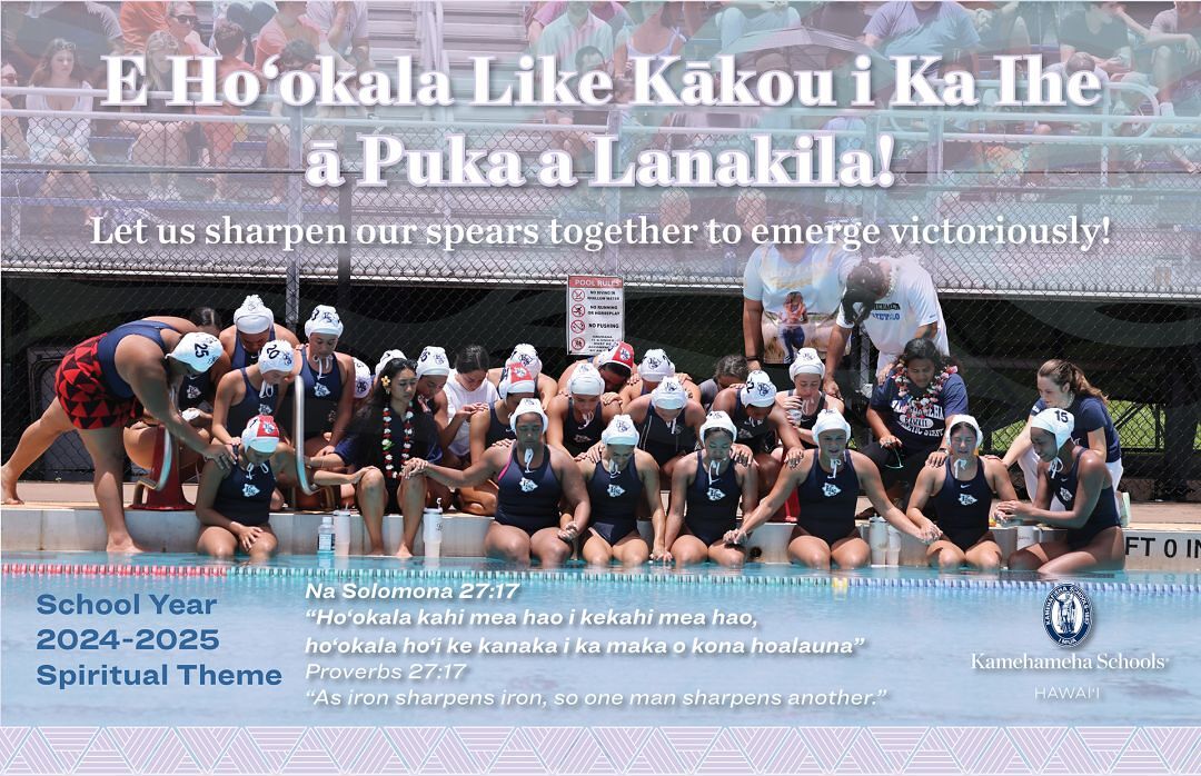The 2024-2025 spiritual theme is "E ho’okala like kākou i ka ihe a puka lanakila! Let us sharpen our spears together to emerge victoriously."