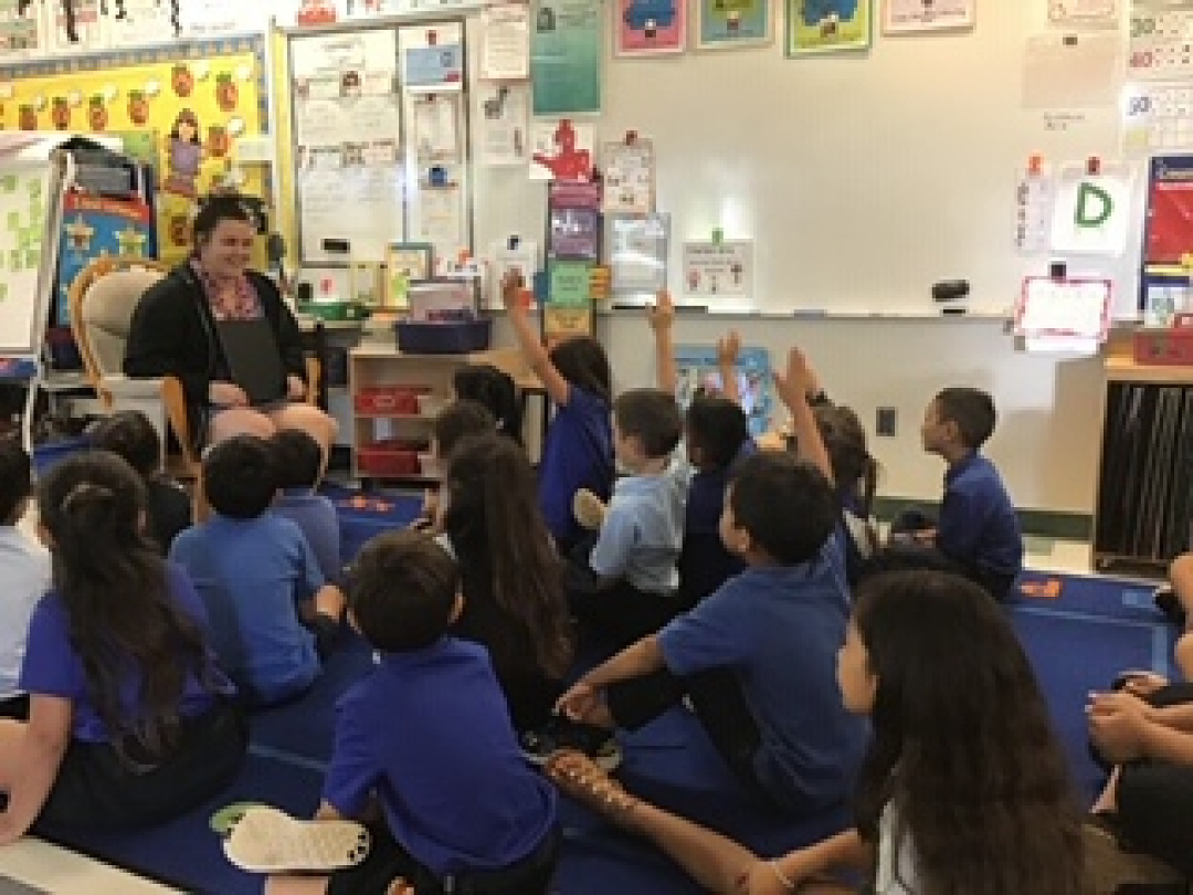 Students asking and answering questions about the book and Hawaiian language skills.