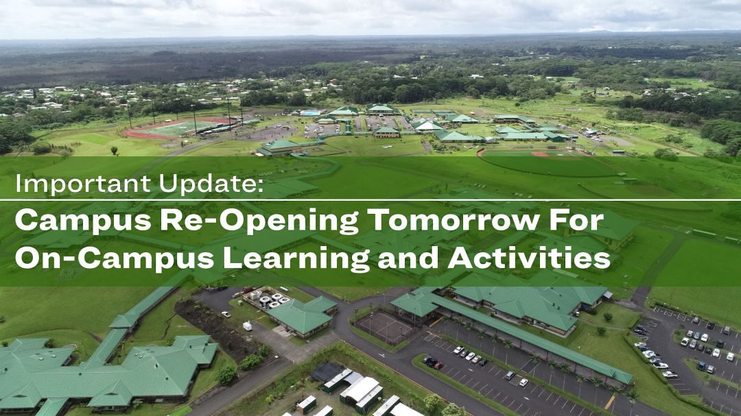 Thanks to the hard work of operations staff to make necessary repairs today, and with an improving forecast for Hawaiʻi County, campus can open tomorrow, Dec. 7, as normal.