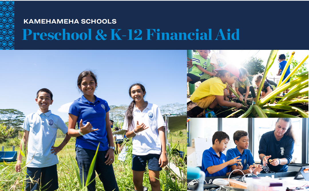 - Financial Aid program criteria and awarding calculations are reviewed annually, so Kamehameha Schools can offer aid to families most in need. Financial aid is not guaranteed from year to year, therefore we ask families to plan accordingly as you pursue private school education.