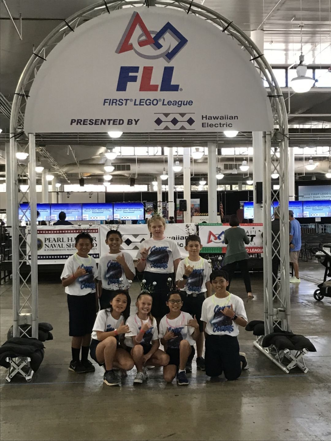 The fifth grade Comet Coders Robotic Team members: Hiʻilei, Braelyn, Lilinoe, Vann, Jaren, Myla, Tevyn, and Daniel proudly pose for a picture at this yearʻs First Lego League Robotics Competition held at the Neal S. Blaisdell Center on Oahu this past Saturday, Dec. 1st, 2018. They competed in 3 qualifying events: Core Values, a research project on an innovative spacesuit, and Robot Design. They received the first place trophy for Core Values: Gracious Professionalism. Congratulations! We are very proud of all your efforts!