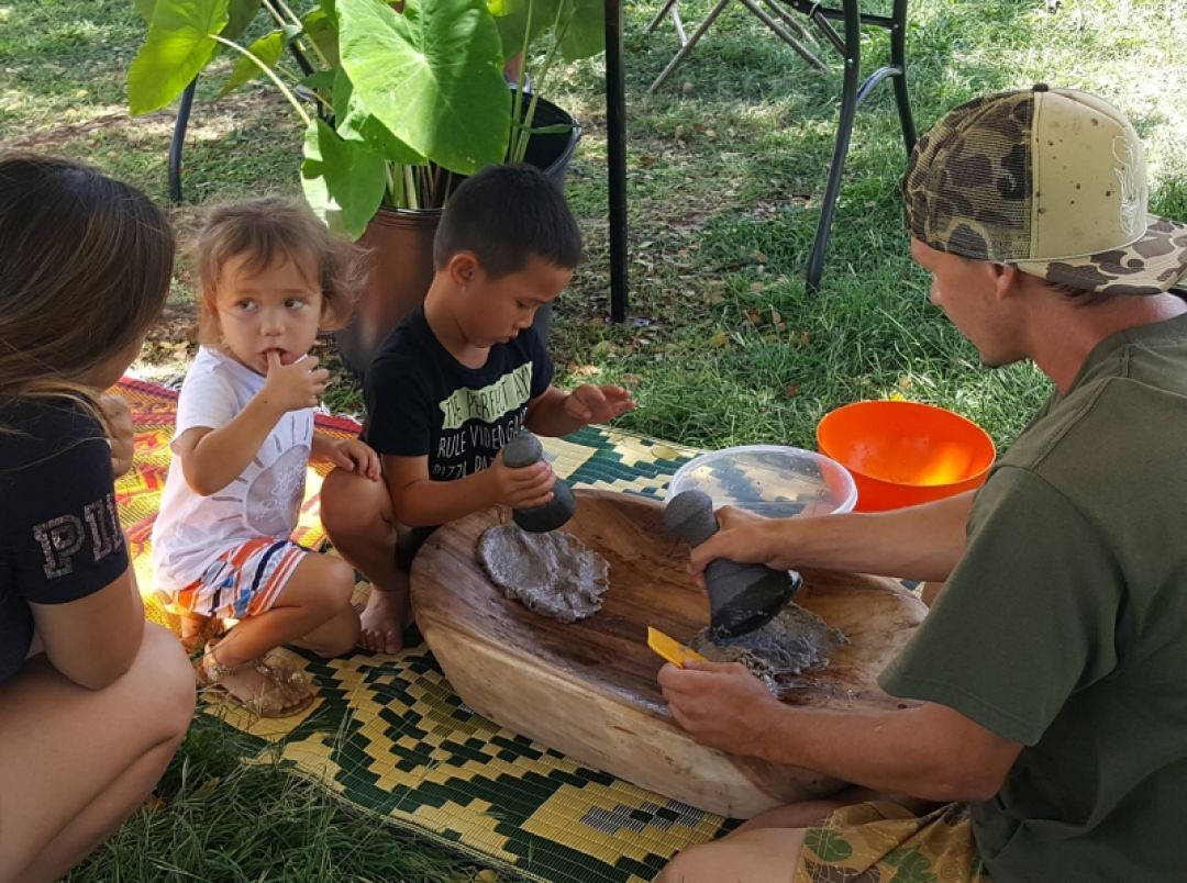 KS and other community-focused organizations sponsored the Keiki Spring Fest that connected Waiʻanae Coast keiki and their parents with educational, developmental, and health service providers. Above, keiki learn how to pound kalo.