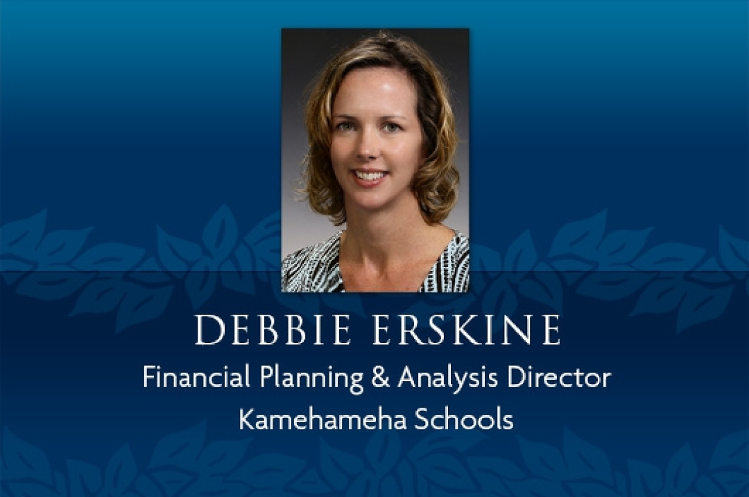 Debbie Erskine has been promoted to director of Financial Planning and Analysis (FP&A), a new division formed by the reorganization of Kamehameha Schools’ Finance Division. Erskine had previously served as controller.