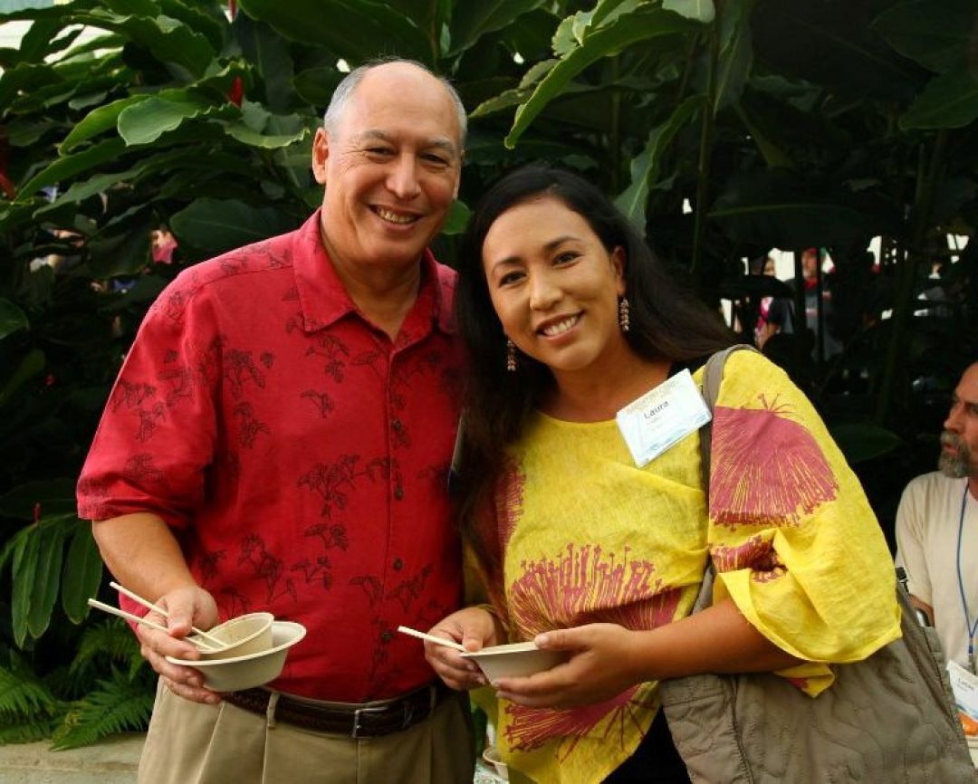 Communications staffer Aron Dote and LAD staffers Mililani Browning and Joey Char share KS information with eco experts at the KS booth.