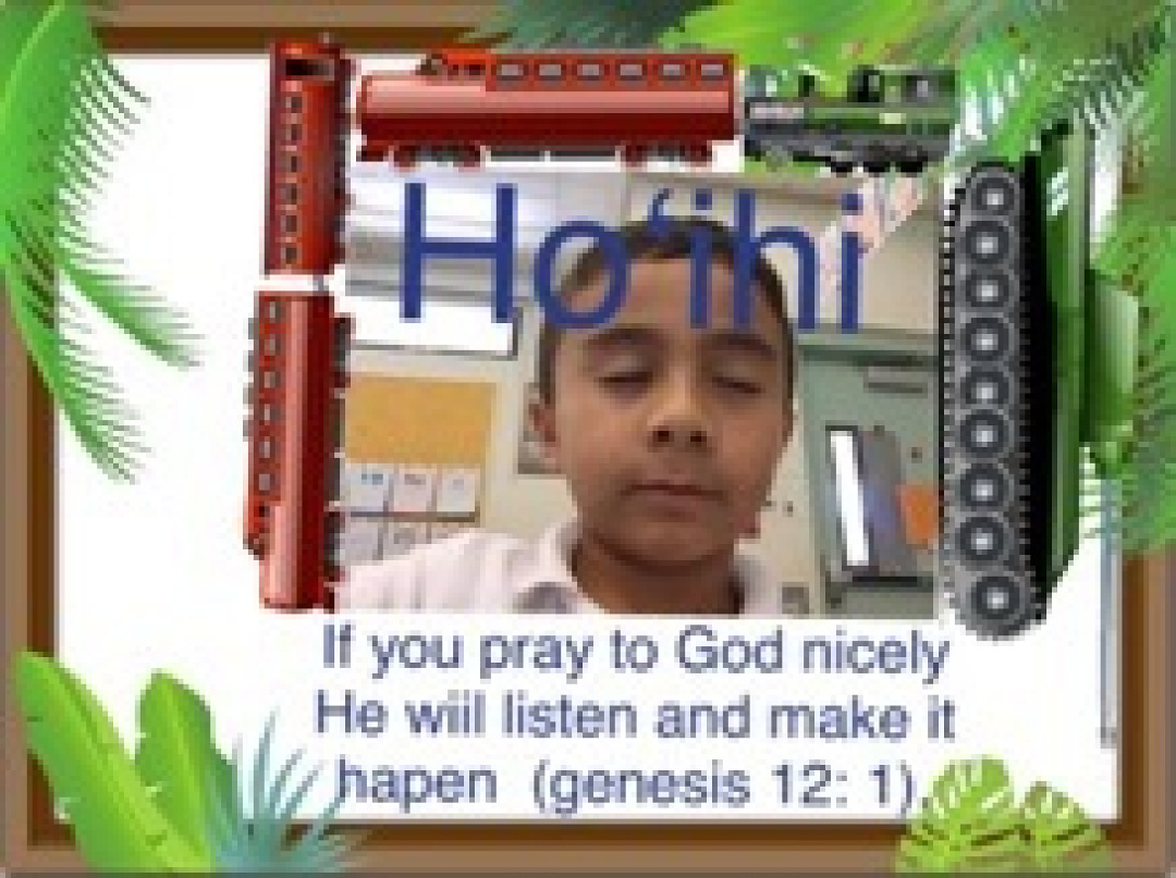 K-1st grade drew pictures and role played different scenarios that illustrated maikaʻi behavior. Second graders looked up verses in their bible and created an ipad presentation that supported the expectations. 3rd-5th graders made videos or other media presentations that exemplified pono behavior in contrast with ponoʻole choices. Haumāna accepted their kuleana and made a commitment to create a positive environment for student learning this year.