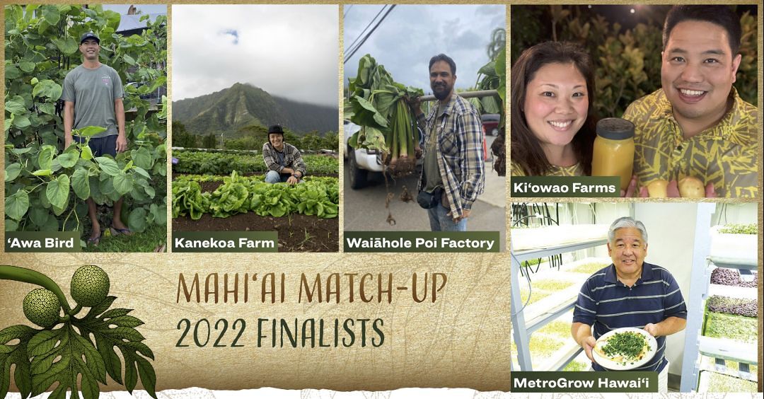 What do ‘ono Hawaiian plate lunches and poi, microgreens, liliko‘i butter, ‘awa, and Waimānalo-grown produce all have in common? These are the fruits of labor from five food system businesses that have advanced to the finals of our Mahi‘ai Match-up business plan competition.