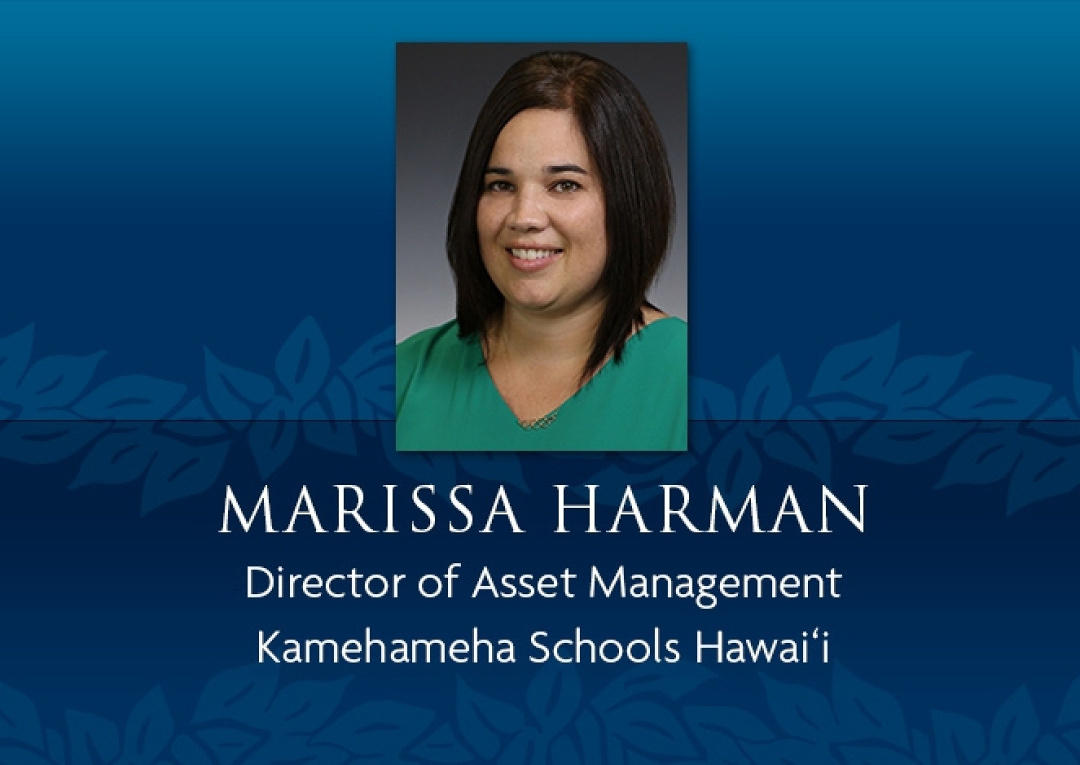 Kamehameha Schools has named Marissa Harman director of asset management for Hawaiʻi island - a position within KS’ Community and Engagement and Resources Group (CE&R).