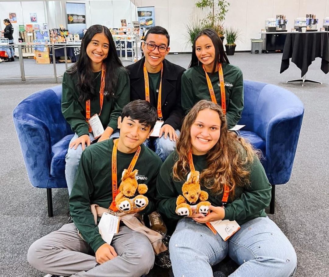 Five KS Maui haumāna traveled to the World Indigenous Peoples Conference on Education to present their labor of love: recording and sharing moʻolelo from Mary Kawena Pukui’s classic He Mau Kaʻao Hawaiʻi: Folktales of Hawaiʻi. Back row (L to R): Alyssa Fernandez KSM’24, Jai Viela KSM ’24, Haley Agustin KSM’23. Front row (L to R): Bennett Takahama KSM’24, Kayla Frias KSM’23.