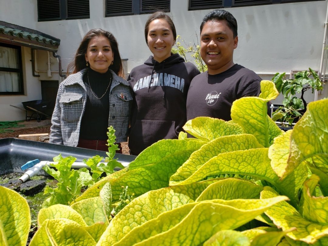 Throughout the year, Papa Mālama Honua planned, planted and harvested a sustainable aquaponic garden in a previously unused area just below its classroom in the Konia building. The garden will serve as a legacy project for future classes to cultivate for years to come.
