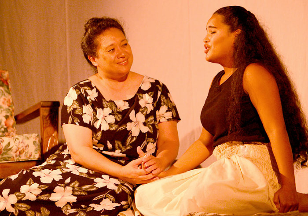 Manono (Kaila Ishii-Manalo) mourns the death of her husband/chief with an operatic aria in Hōʻike 2012.