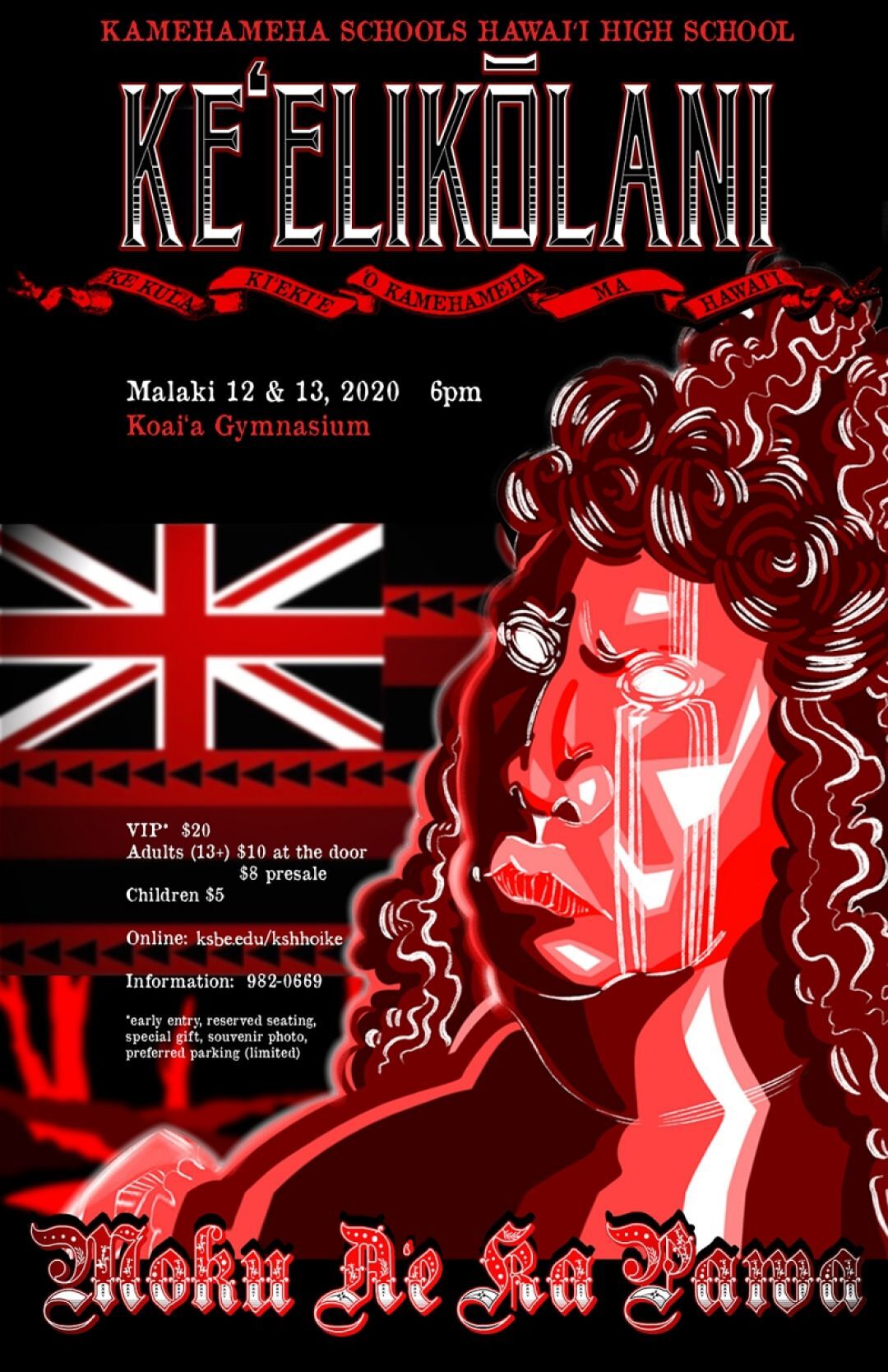 A moʻolelo of this strong, independent and formidable force is one you will not want to miss. Hōʻike is, once again, an all high school production. From the performers to the choir to the band to the costuming, decor and stage management kākoʻo behind-the-scenes, the haumāna and kumu of our Kula Kiʻekiʻe make this production happen.