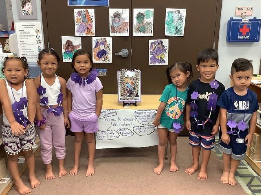 In honor of Queen Lili‘uokalani’s lā hānau, which was Sept. 2, haumāna spent the day picking crown flower, making straw lei and coloring photos of our Queen.