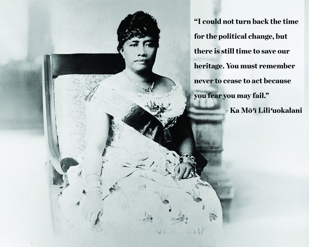 The wise words of Liliʻuokalani - I could not turn back the time for the political change, but there is still time to save our heritage. You must remember never to cease to act because you fear you may fail.