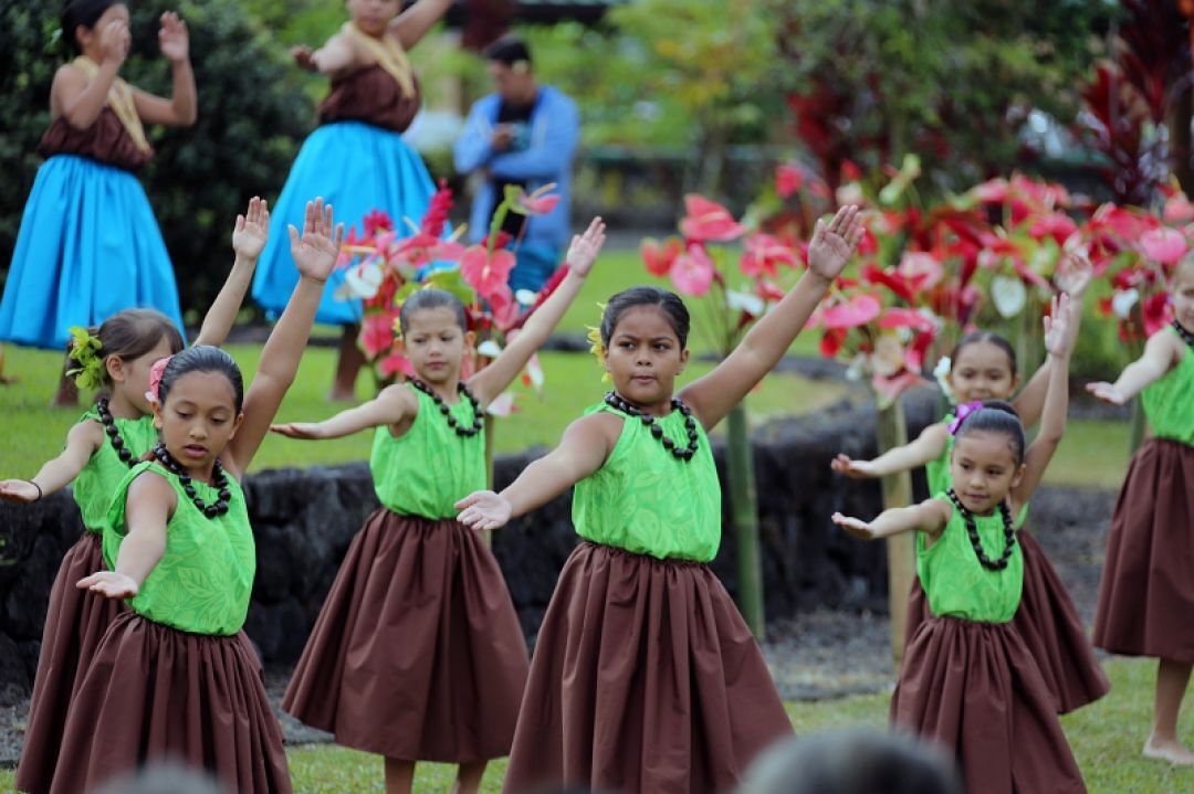 Keiki hula from KS Hawaiʻi kula haʻahaʻa haumāna opens the Hoʻolauleʻa entertainment stage.