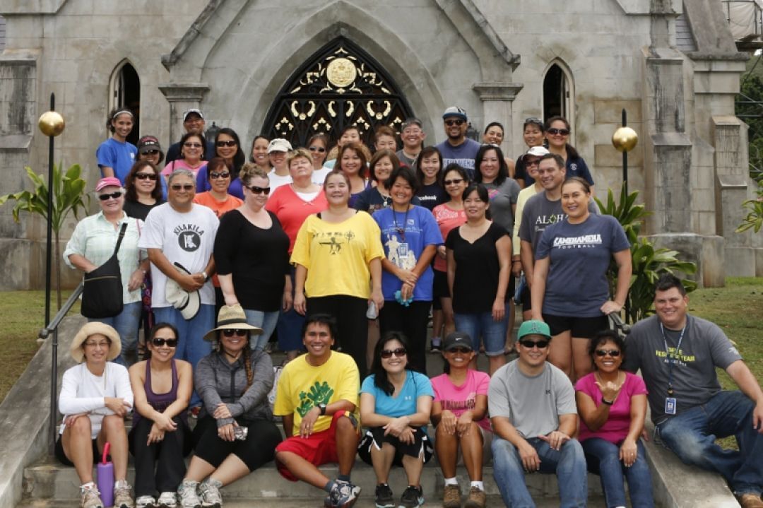 Forty five Kamehameha Schools Human Resources staffers took rakes and weeders in hand for a service-learning project to beautify Mauna ‘Ala, the final resting place of KS founder Ke Aliʻi Bernice Pauahi Bishop. I mua Team HR!
