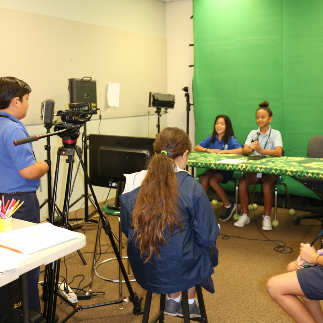 Wake Up Warriors, the inaugural elementary school’s morning broadcast aired  today, Thursday, February 25th at 8:00 a.m.  Each homeroom teacher used their laptop to access the broadcast’s website and projected the show for classroom viewing.   The broadcast team made up of 4th and 5th grade students worked very hard to prepare for this first show.  Members of the team wrote the script, performed all of the necessary jobs and responsibilities, and diligently showed up to practices.