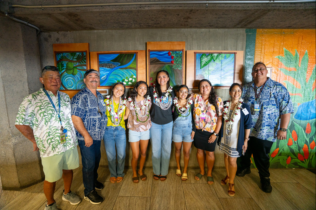 Before installation, the haumāna presented their pieces to Hawaiʻi Department of Transportation officials, explaining the inspiration behind each design. A QR code linking to their recorded presentation accompanies the display, allowing visitors to learn more about the stories and meaning behind the art.