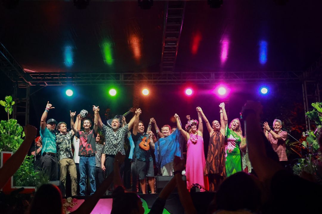 Knowing that mele plays an important part in healing, a handful of people began planning and networking to make the event at the Bishop Museum Great Lawn a reality. In just 12 days' time, organizers managed to secure an all-star lineup of local musicians and hālau. They also got buy-in from every local TV station and most radio stations to broadcast the event live. Social media helped build momentum too.