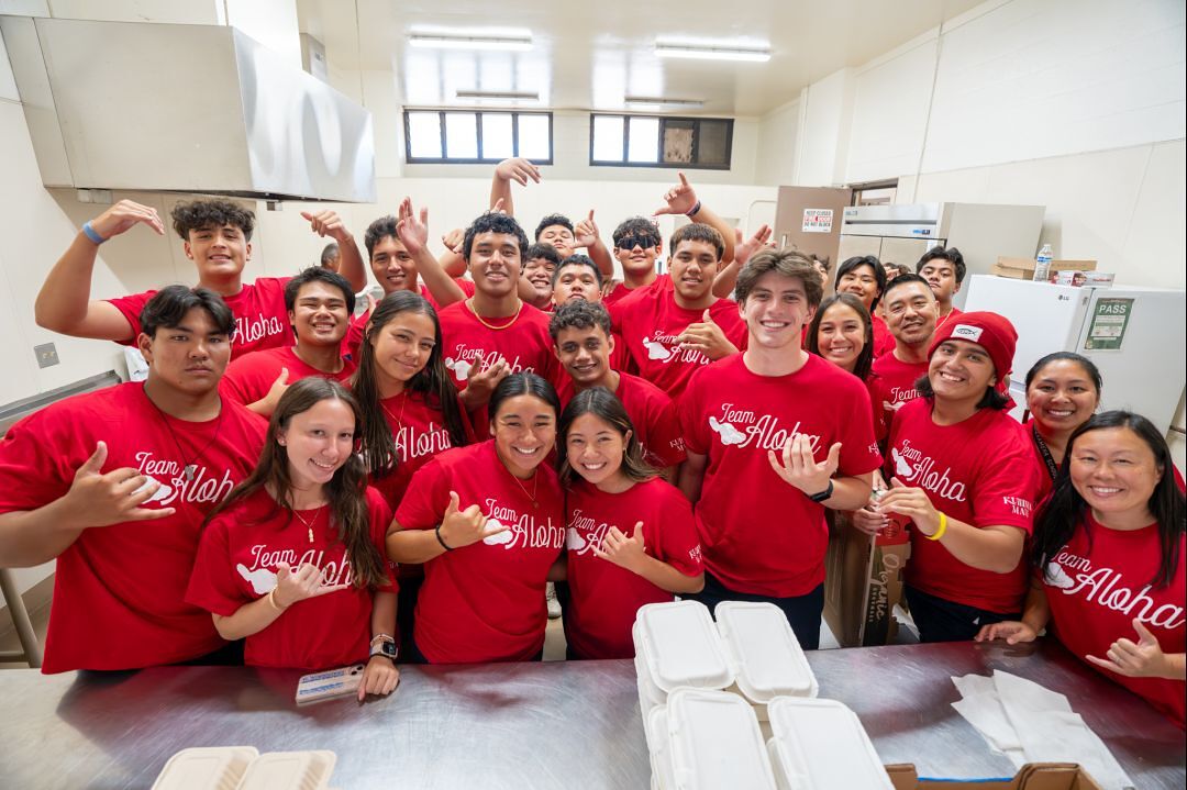 One year after the devastating Maui fires, 20 Kamehameha Schools students volunteered at a remembrance luncheon to offer support and serve the impacted families of Kula.