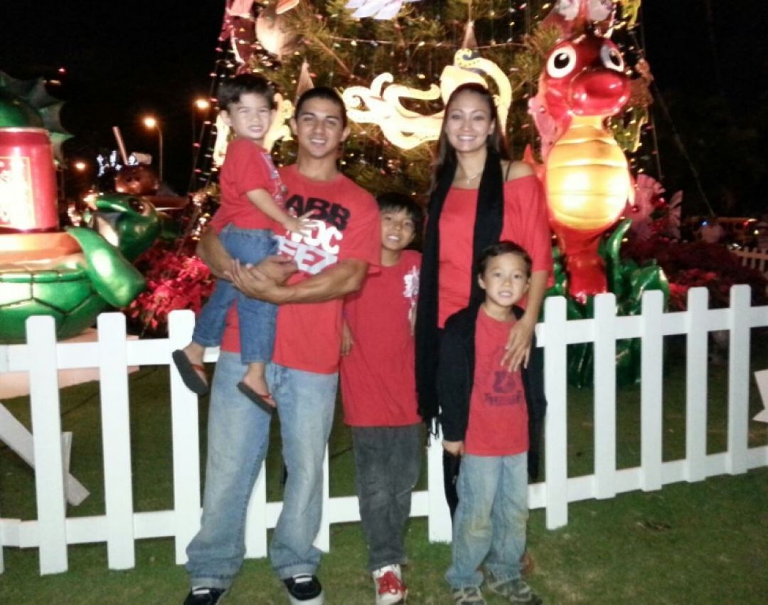 KS Kapālama 2001 alum and former foster child Kaimana LeBlanc is an advocate for foster care. Thanks to loving foster families he found direction in life and today is a husband, father, business owner, and community volunteer. Above are Le Blanc, his wife Jasmine and their sons Jacob, Nathan and Elijah.