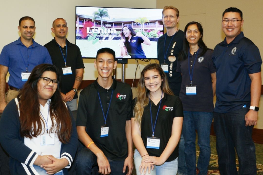 KS Hawaiʻi students Tia Kamaliʻi, Jarvis Benito and Carlie Baclig presented some of the projects done on their campus at the “Student Showcase” station, giving educators an idea of what student-produced digital media pieces, like KSH’s “Lehua TV,” could look like.