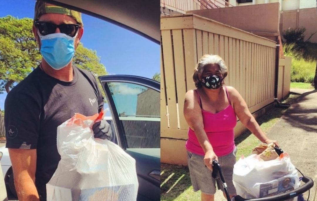 Kupuna Kokua founding volunteer Tj O’Donnell delivers food to his kupuna. Volunteers are paired with a kupuna who they call weekly, to chat and check up on their needs.