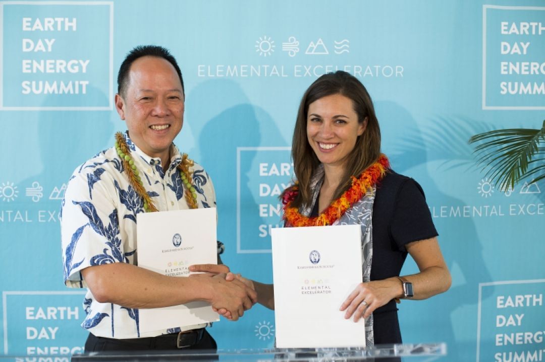 Kamehameha Schools CEO Jack Wong and Elemental Excelerator CEO Dawn Lippert signed a “Pledge for Collective Impact” at a recent Earth Day Energy Summit. The pledged involves a cross-sector collaboration seeking a clean, renewable energy future for Hawaiʻi.