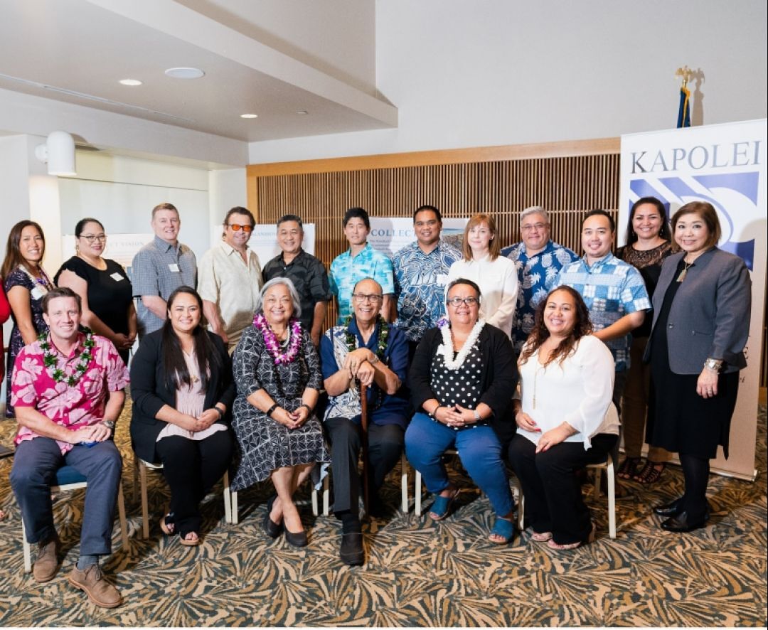 KS shared news about the project with the region’s business community at a recent Kapolei Chamber of Commerce luncheon. Above, sitting (l-r): James Campbell Company VP of Development Steve Kelly, State Representative Stacelynn Eli, Nānākuli Hawaiian Homestead Community Association members Nālani Beniona and Kamaki Kanahele, KS Wai‘anae Regional Director Kalei Kaʻilihiwa, and KS Wai‘anae Region Project Manager Kimmie Timson. Standing (l-r): State Senator Maile Shimabukuro, KS Wai‘anae Region Facilities Manager DeJa Nickle, Kiewit Building Group COO Tom Broderick, Kiewit Senior Project Manager Lani Smithson, KS Sr. Capital Program Manager Gary Nishioku, GD Designs President Glenn Yokotake, KS Sr. Planner Scott Abrigo, GD Designs Designer and Planner Jennah Coltrain, AIO Digital Director Jared Kuroiwa, Library Creative Principal Chase Conching, KS Sr. Project Manager Healiʻi Heine, and DOE Nānākuli & Waiʻanae Complex Superintendent Ann Mahi.