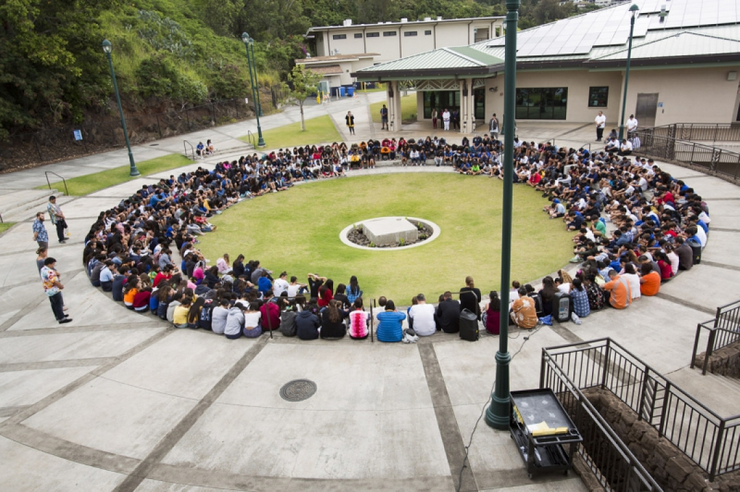 Kamehameha Schools Kapālama Middle School students gathered at the piko of the campus for their moment of silence.