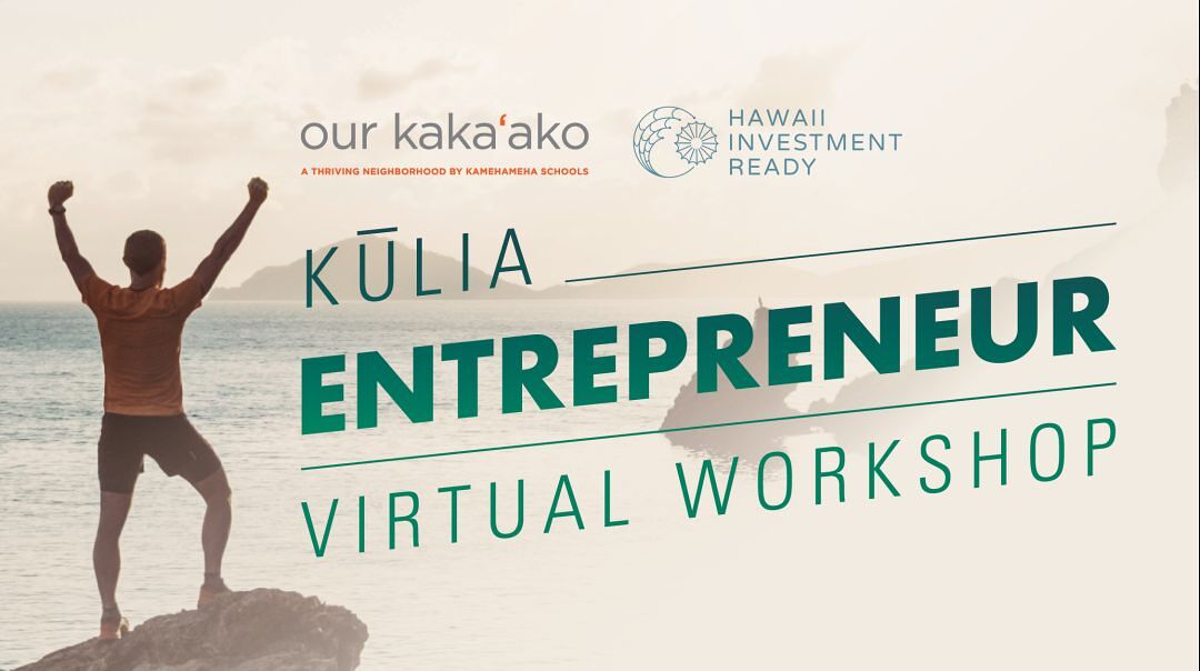 Calling all current and aspiring Hawai‘i entrepreneurs and students! Our Kaka‘ako and Kamehameha Schools invite you to the Kūlia Entrepreneur Virtual Workshop live on Zoom on Wednesday, April 27, from 10:00 a.m. to 12:00 p.m.