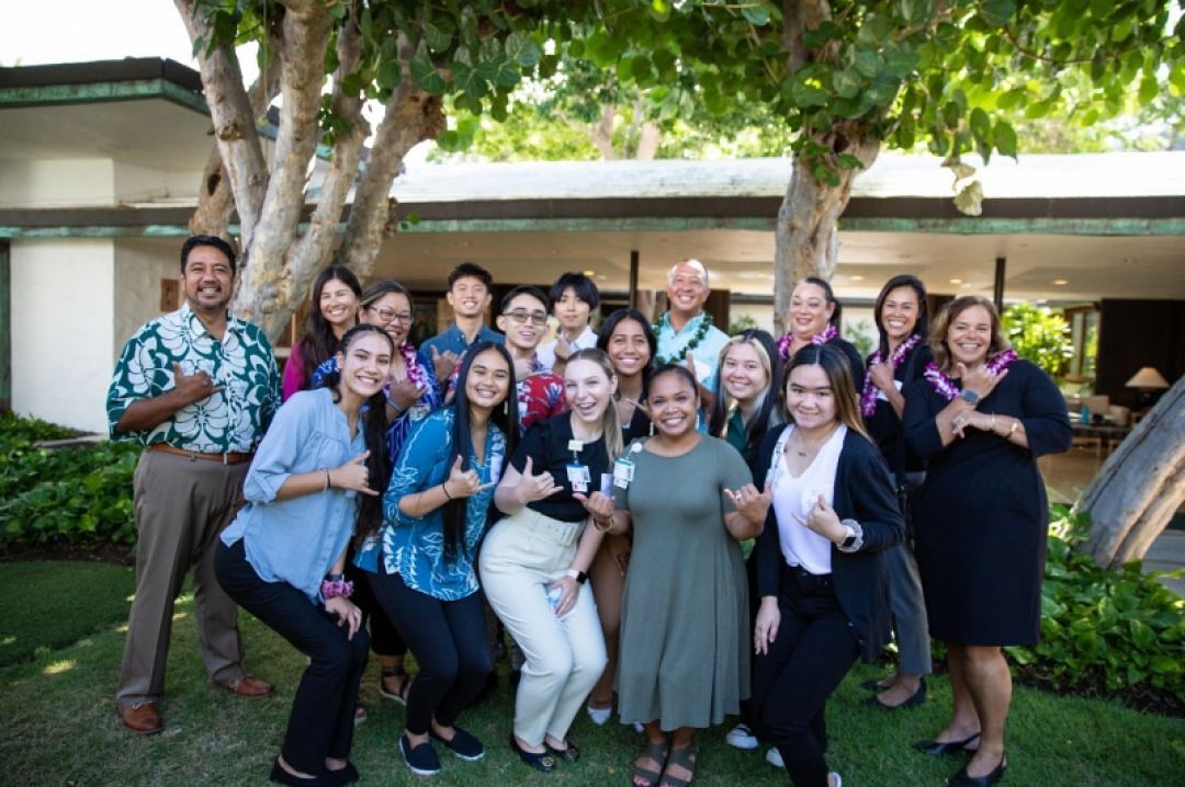 KS and KS-affiliated interns pose with ʻōiwi leaders from Hawaii Pacific Health after a “talk story” session about succeeding in the medical field
