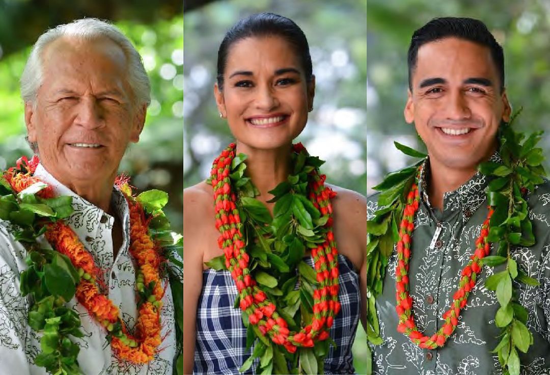 Virtual festival hosts: Kimo Kahoano KSK’66, Brook Lee KSK’89 and Kamaka Pili KSK’06. This year’s theme is “E huli alo I ka ulu lā, ua ao ē” – With the rising of the sun, a new day dawns.