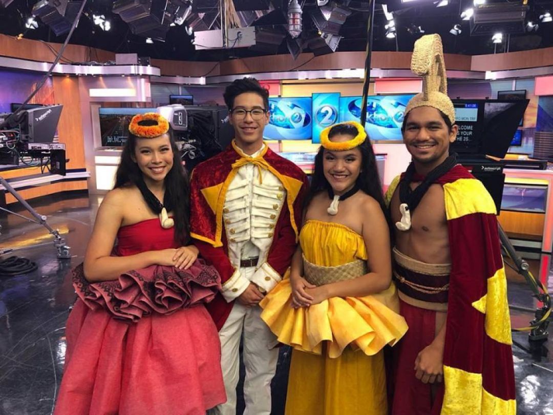 Cast members from the KS Hawaiʻi High School Hawaiian language opera “The Battle of Kuamoʻo” recently appeared on local morning news shows to promote their March 14 and 15 performances. They are: Kayla Enanoria, Jorden Kealoha-Yamanaka, Kyra Gomes, and Kyden De Sa.