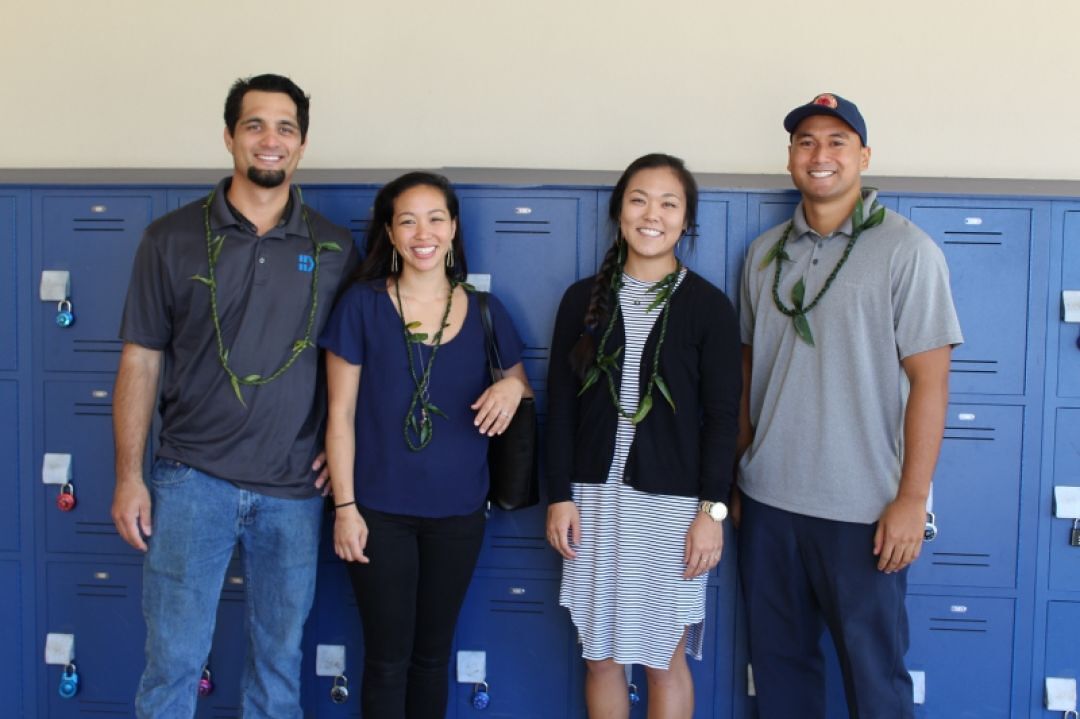 From left to right: Kamuela Kalehuawehe (KSM ʻ08), Kela Lau Hee (KSM ʻ07), Keli Hayase (KSM ʻ10) and Eli Ferreira (KSM ʻ10)