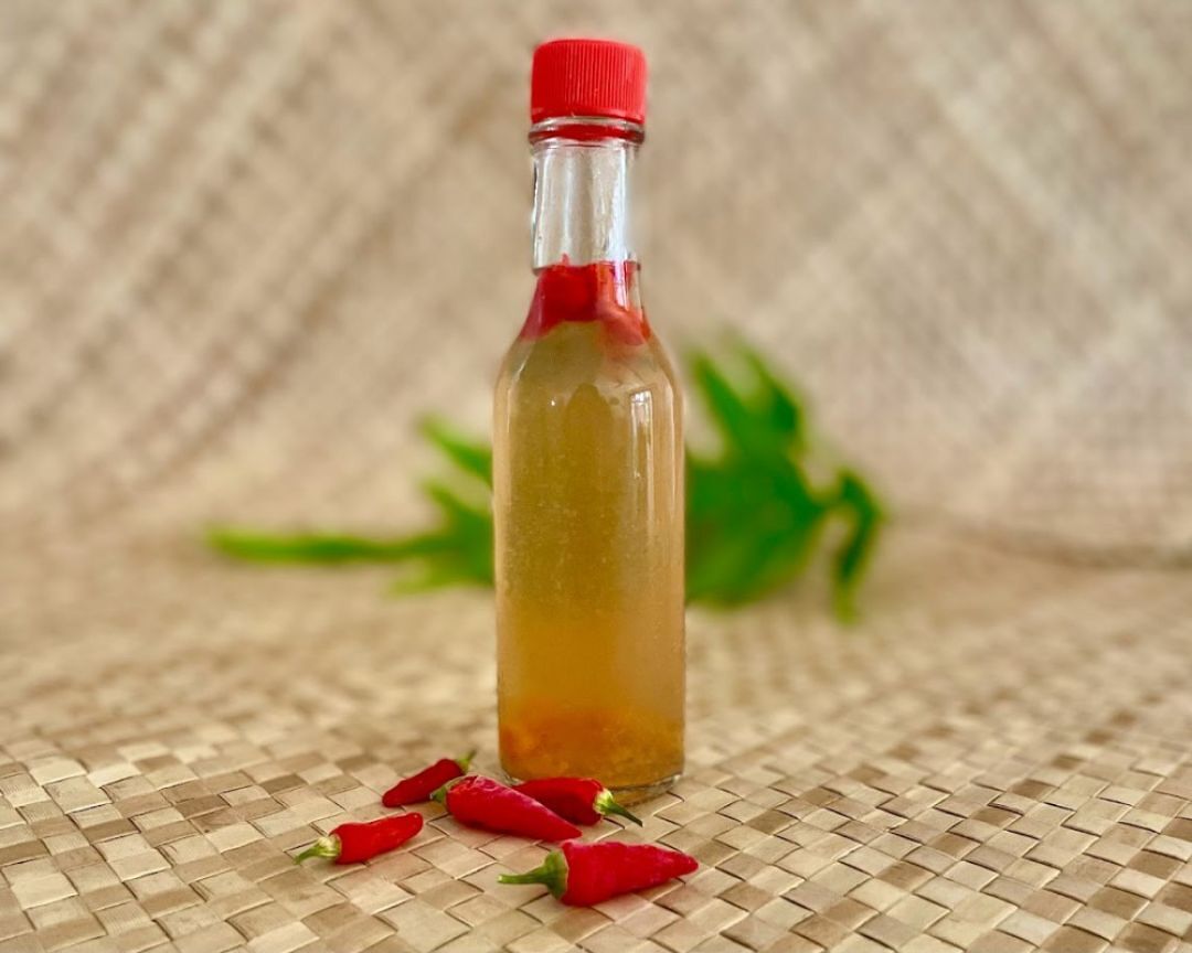 Love is like a fire in the body! Feel the heat of love’s fire once again – with some spicy chili peppers! Valentine’s Day has passed, but here is a delicious recipe to warm the heart of your sweetie each and every day. Chili pepper water, or “chili peppah wattah,” is a great condiment, highly desired with Hawaiian food. You can adjust the heat to your taste by increasing or decreasing the amount of chili peppers used.