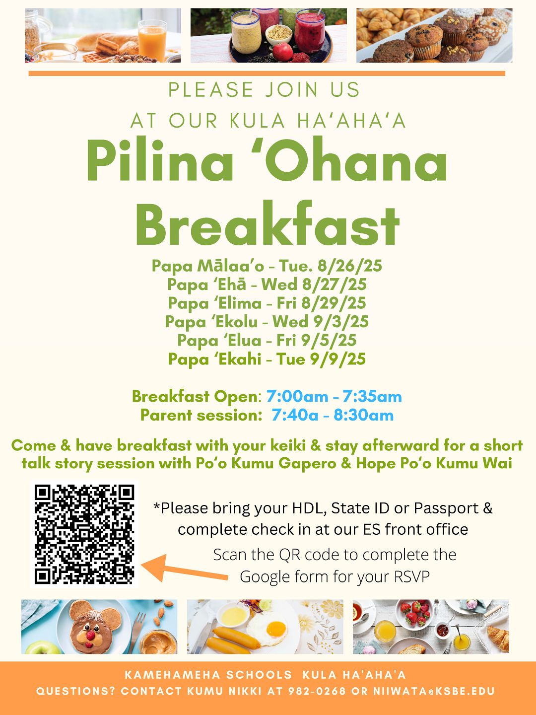 Kula Haʻahaʻa ʻohana are also invited to join us for our Pilina ʻOhana Breakfasts to start the school year.