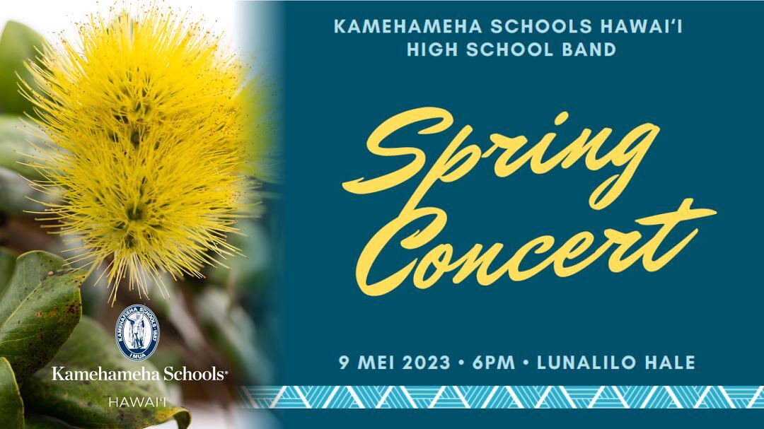 The Kamehameha Hawaiʻi High School Band and Hawaiian Ensemble will present their 2023 Spring Concert at Lunalilo Hale on Tuesday, May 9, 2023 at 6pm. They will be presenting various mele and will feature the leo nahenahe of a special guest, Kainani Kahaunaele! E hoʻonanea mai!