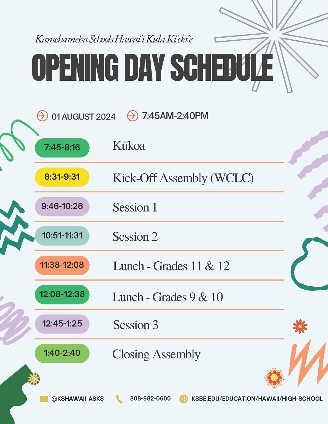 Kaʻiwahoʻokelewaʻa's last first day schedule of their HS careers.