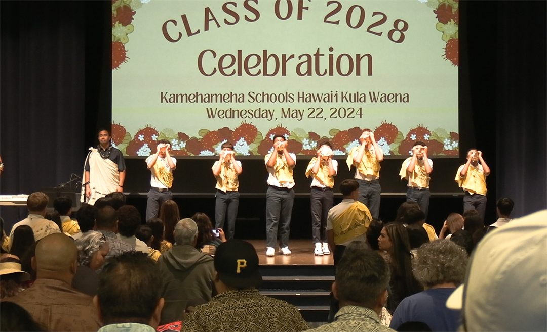 Following their Lei Pāpahi Transition Ceremony, the class of 2028 held a celebration as they move on from Kula Waena to Kula Kiʻekiʻe. Each student was recognized and the class celebrated this important transition with mele and hula.