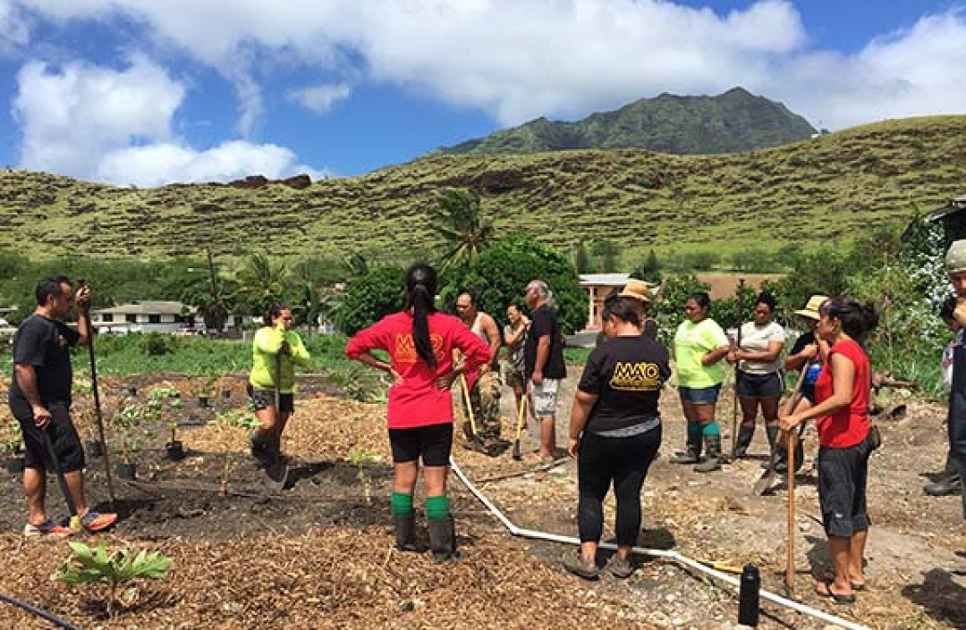 In line with ma ka hana ka ‘ike (learning through doing), ‘Aimalama Lunar Conference attendees put discussion into practice by visiting Native Hawaiian community organizations including MAʻO Organic Farms on the Waiʻanae coast.