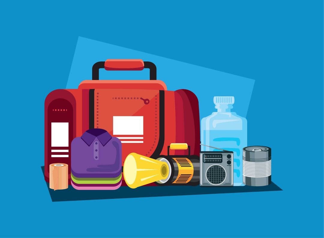 Prepare a well-stocked emergency kit that includes essential supplies such as non-perishable food, water, medication, flashlights, batteries, first aid supplies, important documents, and any specific items needed for infants, elderly family members, or pets.