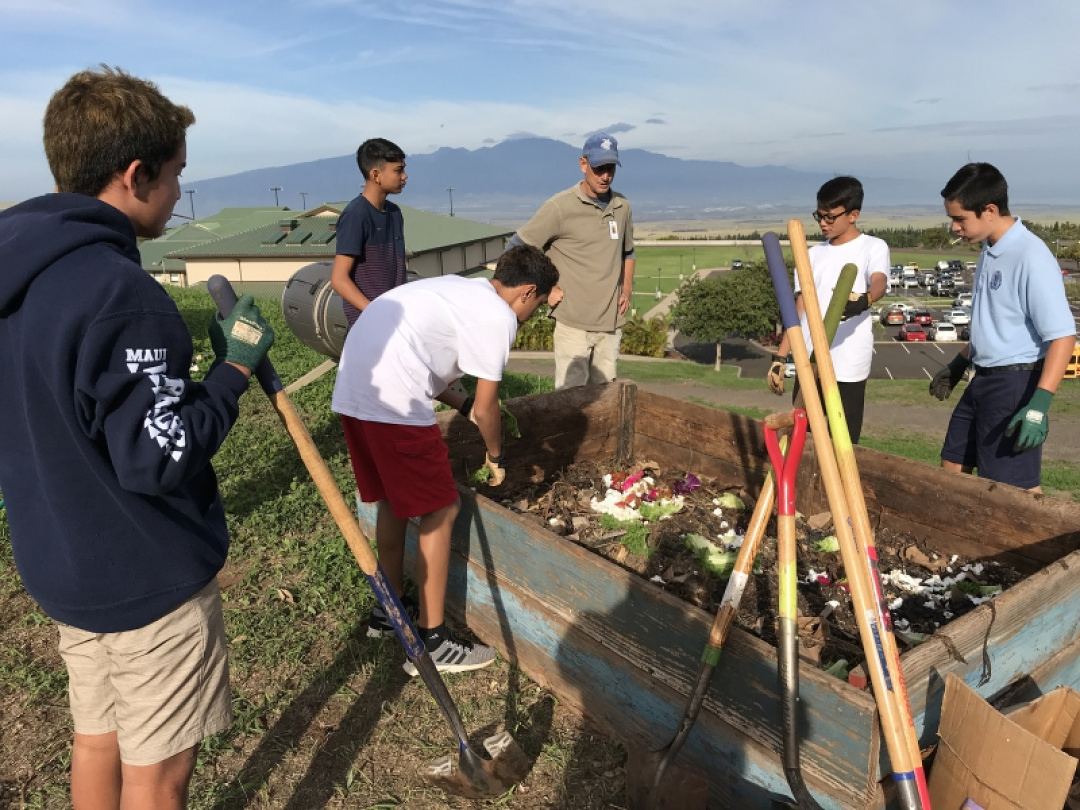 Kumu Nio described the current mission of the Kapiko is essentially to create soil. The grounds were previously compacted to prepare for building a chapel so the majority of the dirt that’s in place now isn’t suitable for growing and sustaining crops. This is why there’s a lot of compost being turned and worked into the grounds. As the Kapiko is being transformed students have the opportunity to learn about modern and ancient Hawaiian agriculture processes with hands on experience while applying lessons like plant identification and more learned in Mr. See's science class.